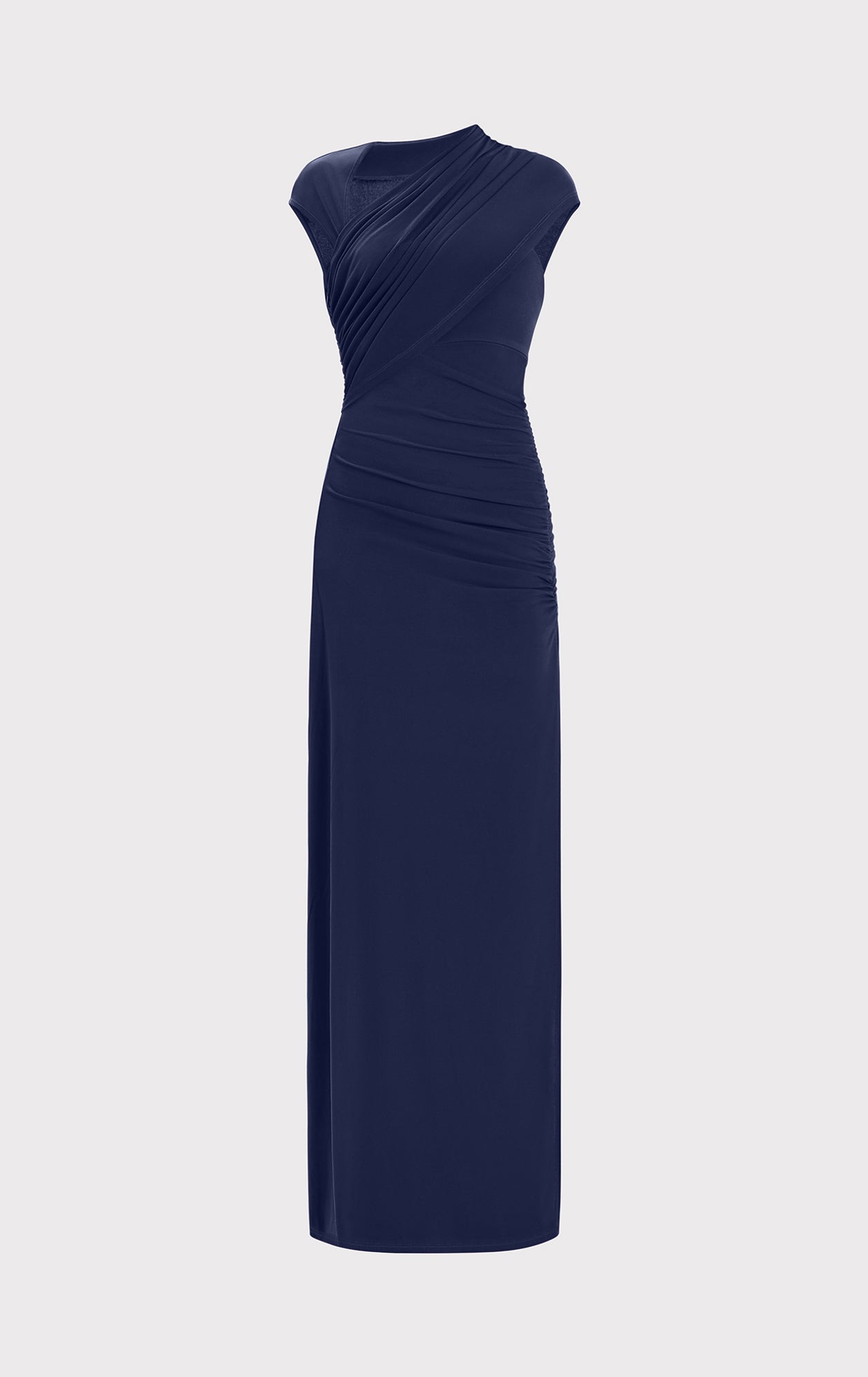 RUCHED MATTE JERSEY S/L DRAPED GOWN
