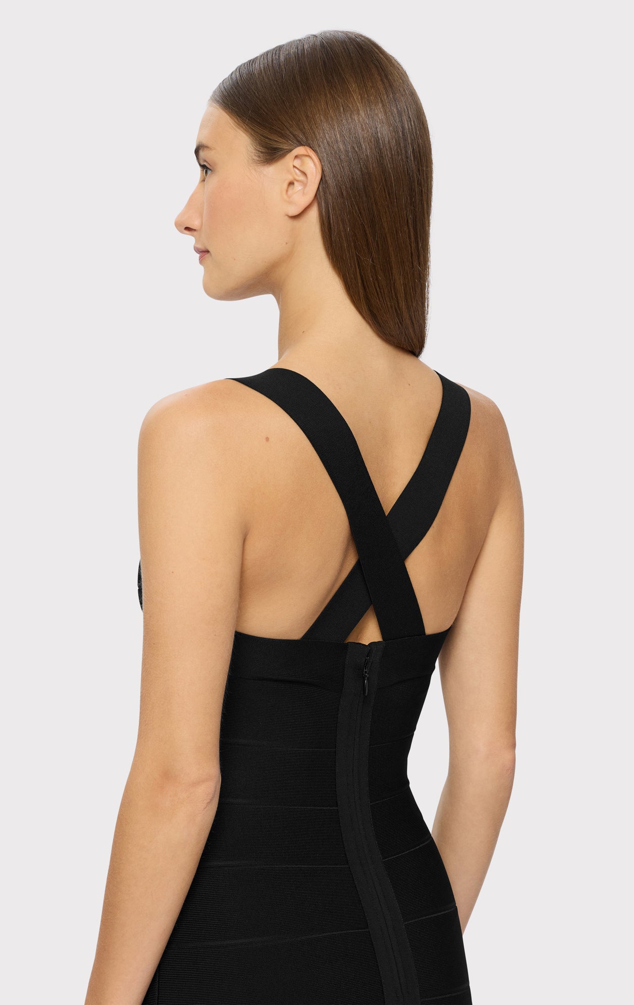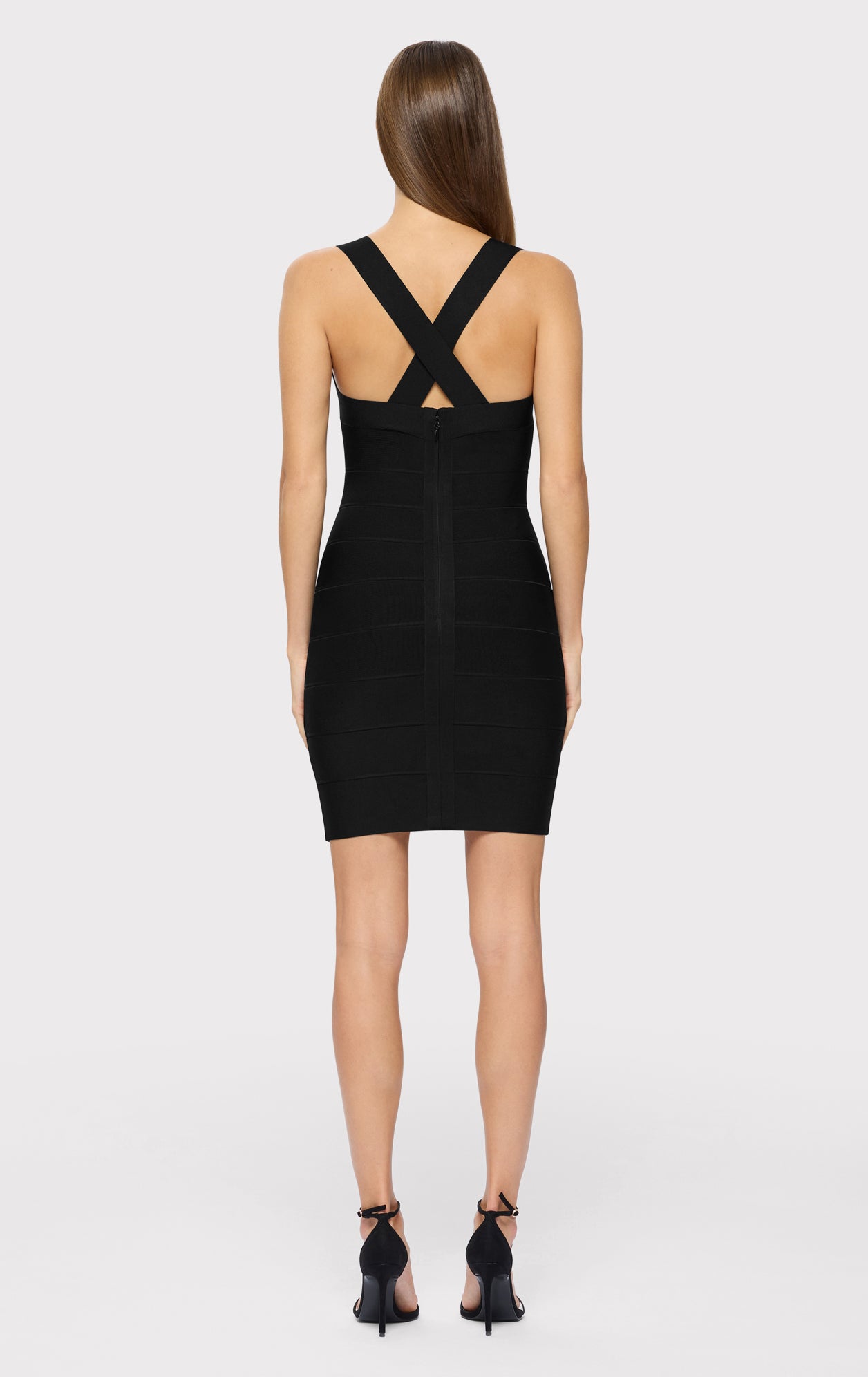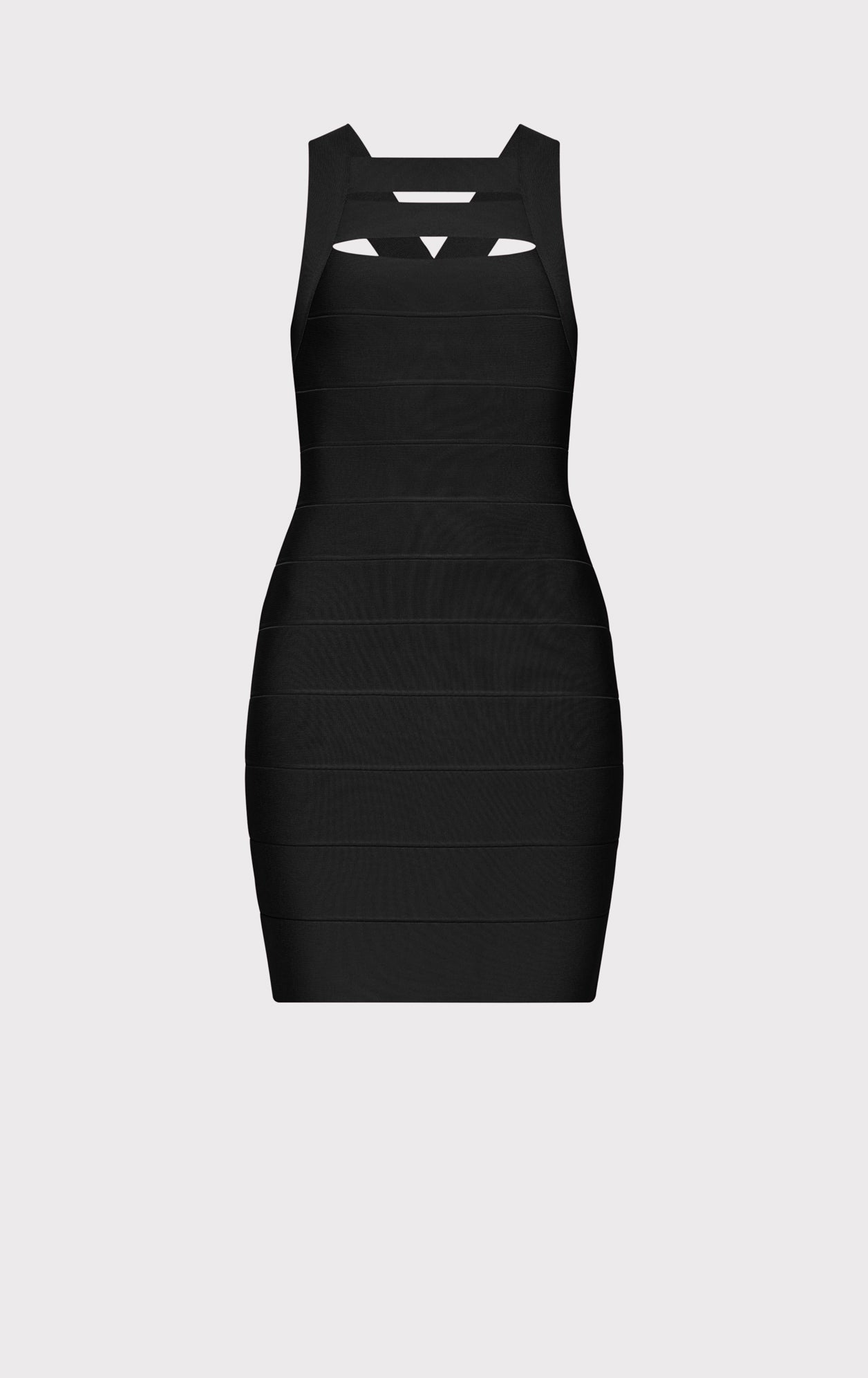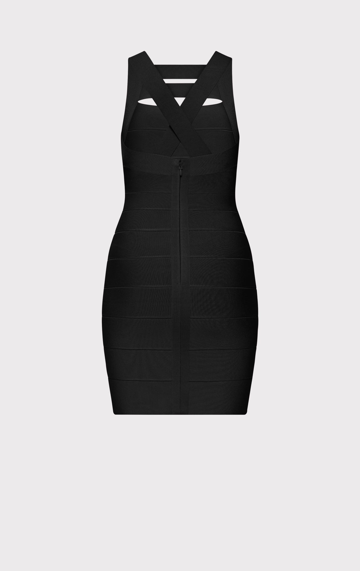 With a figure-hugging fit that smooths and sculpts all over, this mini dress is a reinvention of our signature bandage dress, featuring strappy details and cutouts, falling to a mini hemline.