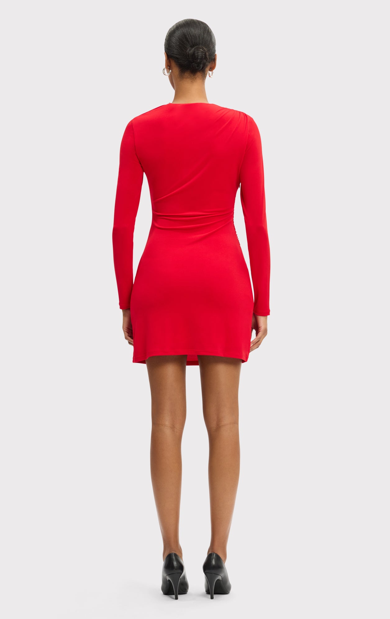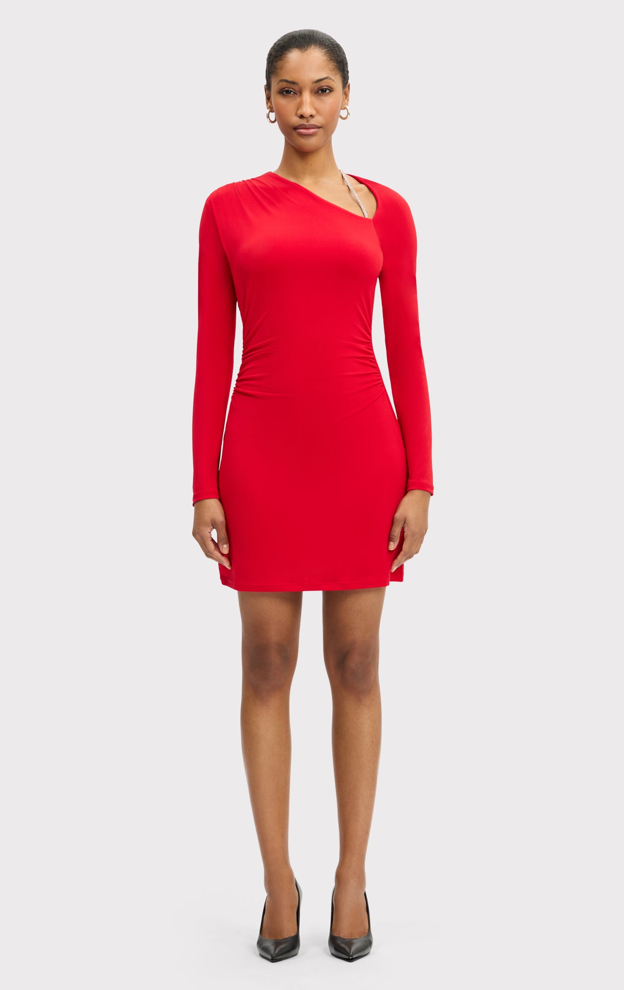The Abby Dress is cut from a lightweight, draped jersey in a body-skimming silhouette. It is designed with an asymmetrical neckline and a crystal strap detail. Finished with hidden side-zip.