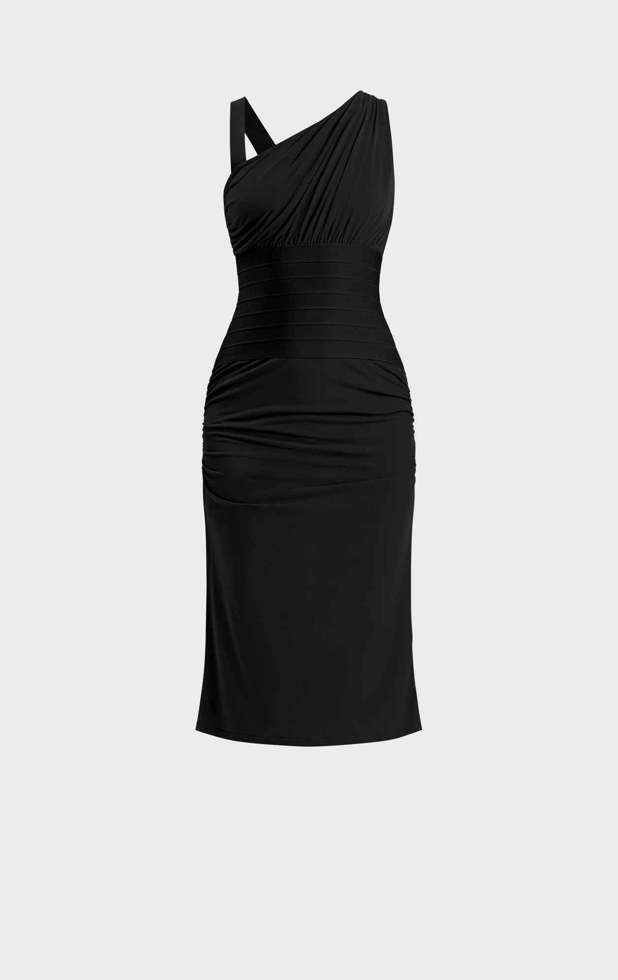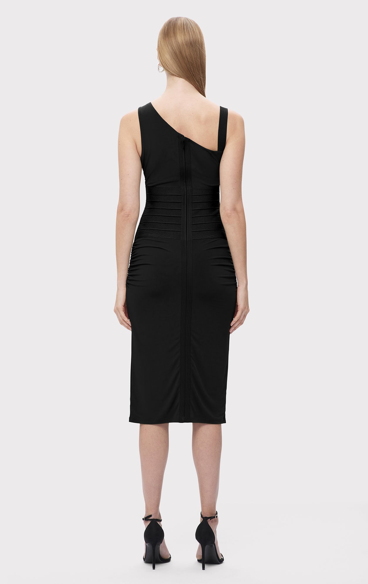 Part of the Fall '24 collection, the Ingrid Dress is styled with a defining bandage waist and ruching bodice. The midi is crafted from a luxe jersey for easy wear.