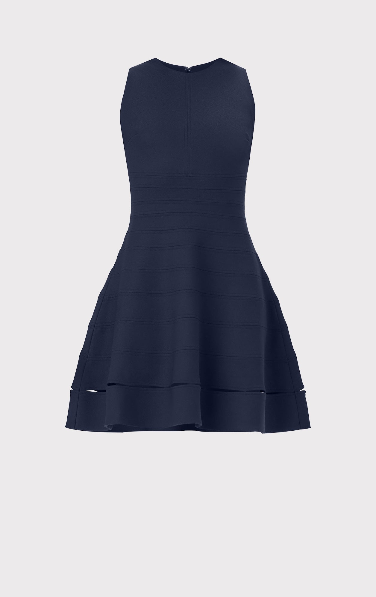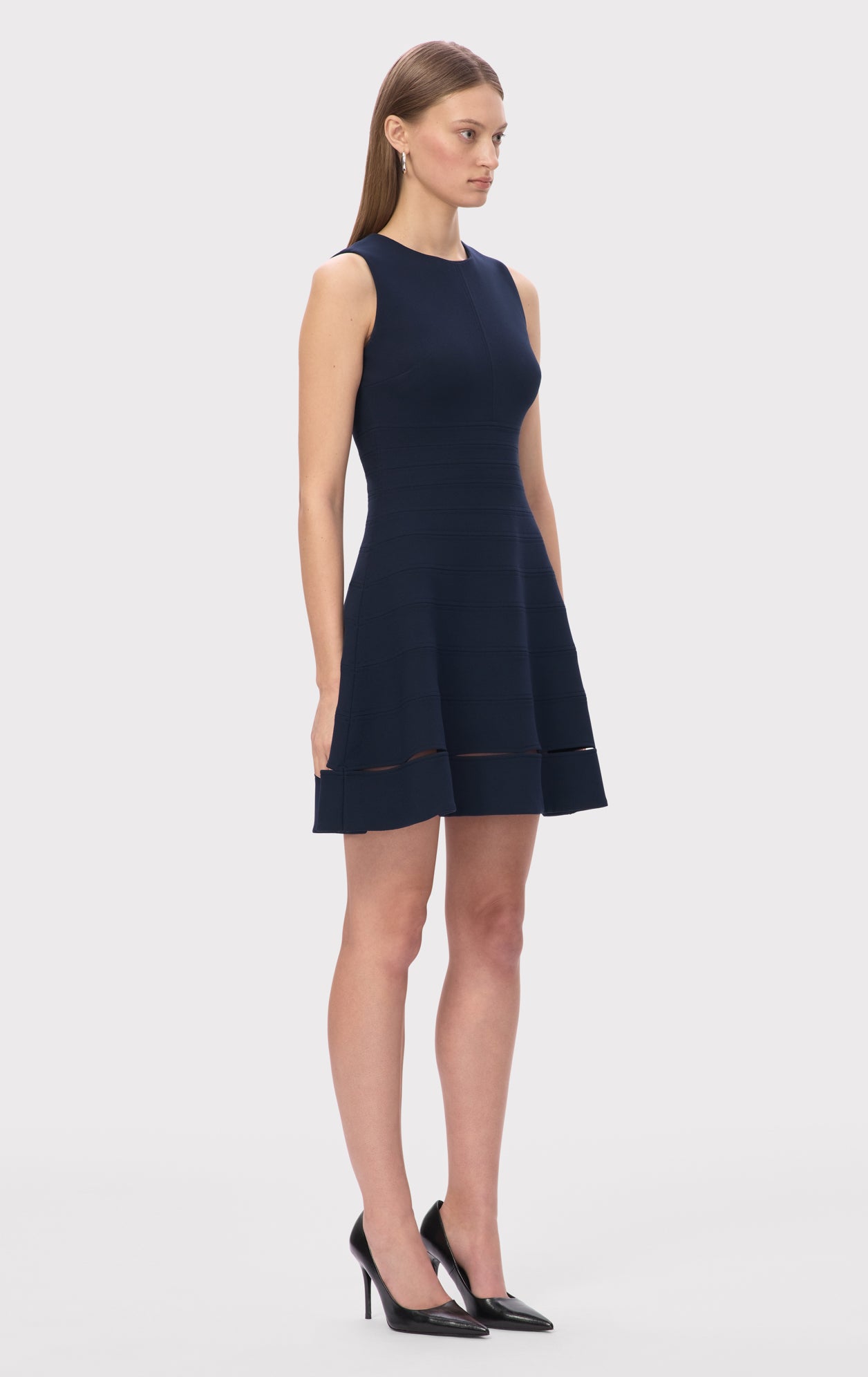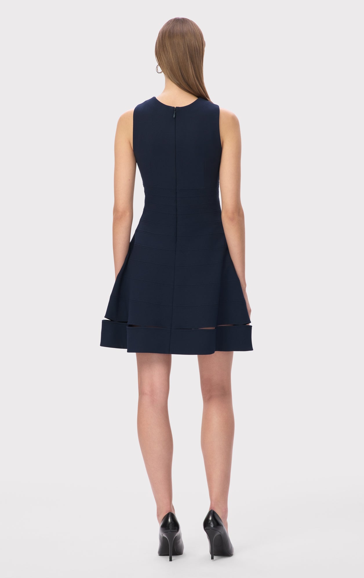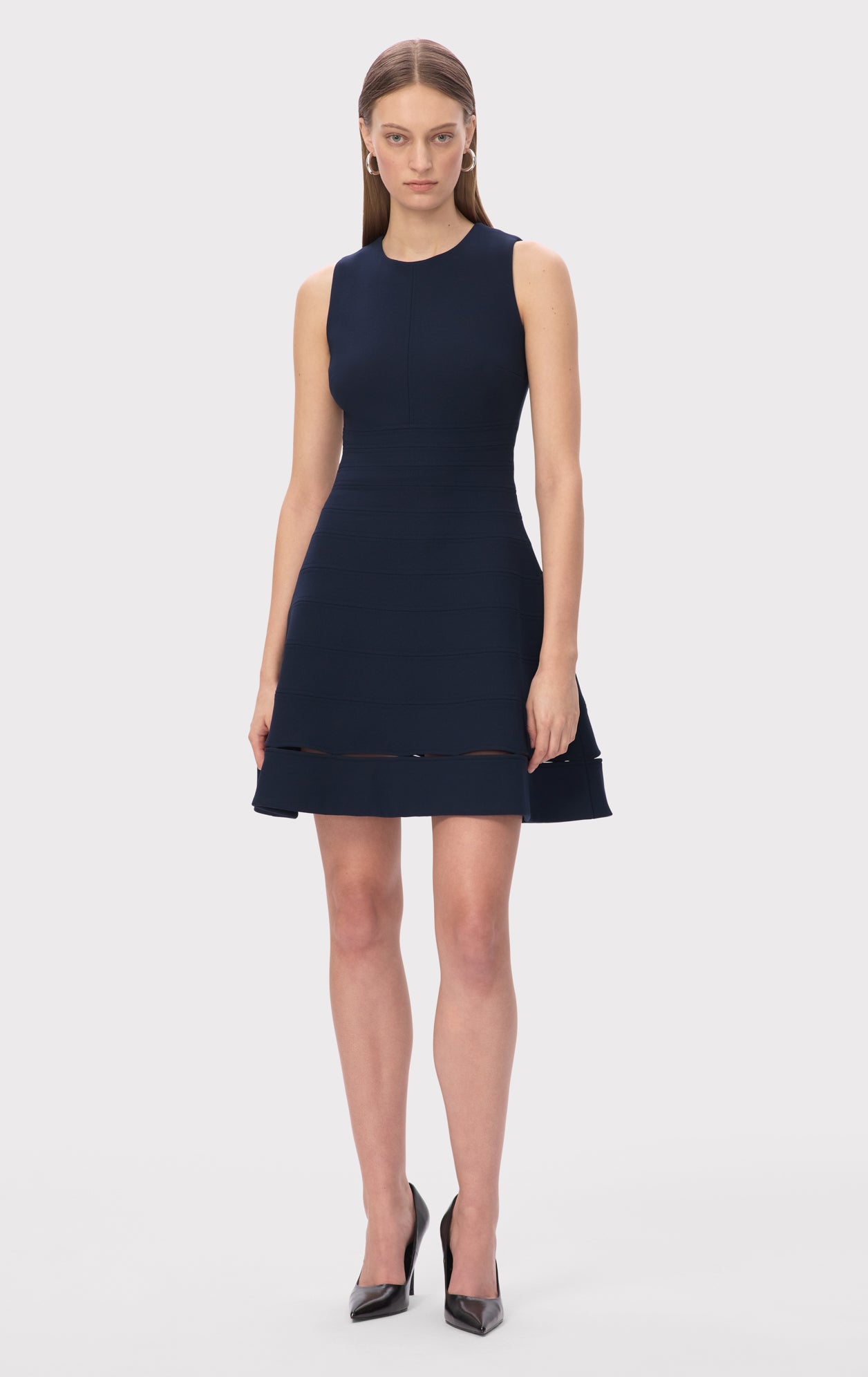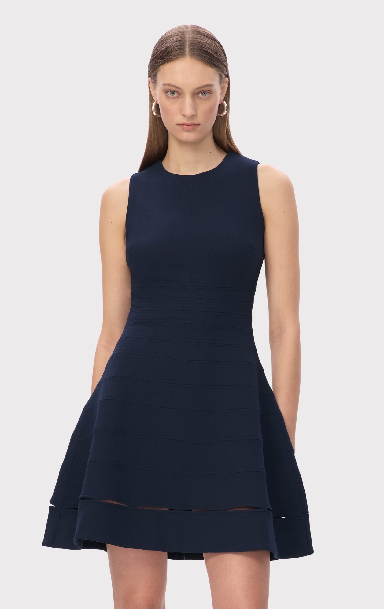 A new daytime silhouette for Pre-Fall '25, the Rosemary Dress is cut from medium-weight stretch crepe with fit & flare styling. Woven bandage detail and a peek-a-boo hem define this wearable mini. Finished with center-back zip.